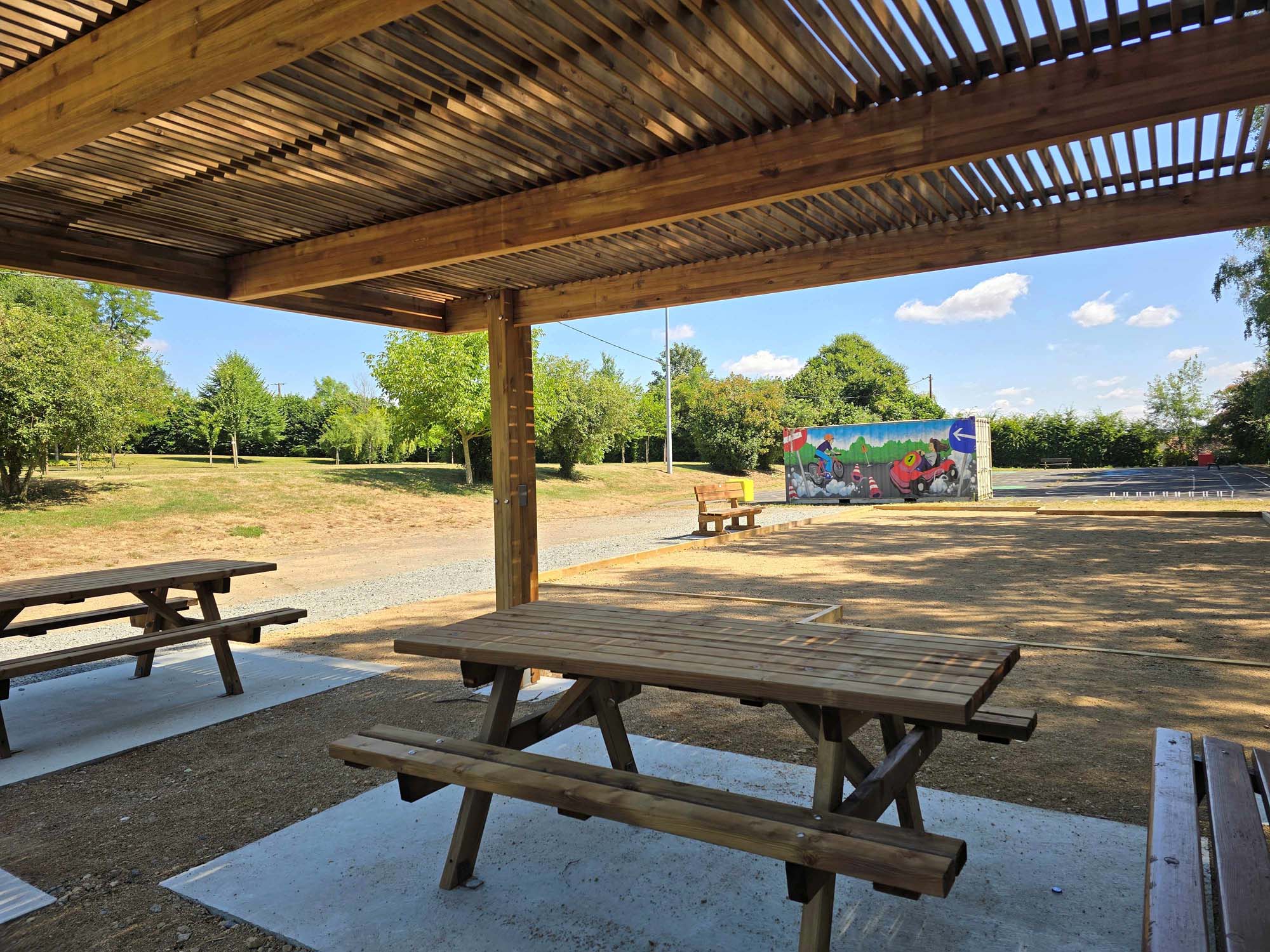 • Aménagement d’une aire de jeux de pétanque avec une pergola et des tables de pique-nique – Clazay – Projet porté par la Pétanque Clazéenne – 14 508 € [10 voix]